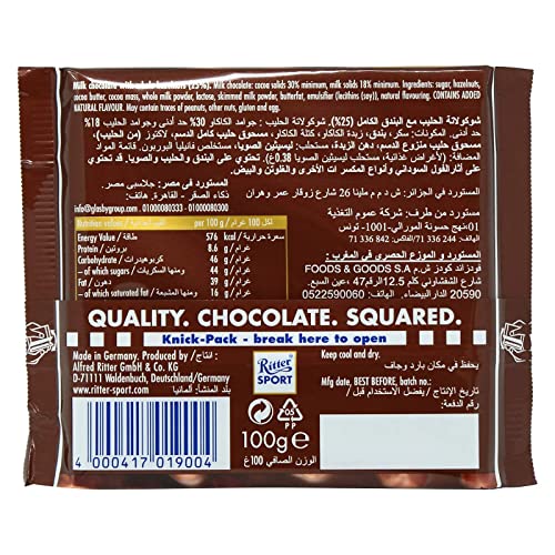 Ritter Sport - شيكولاتة ريتر سبورت مع بندق كامل محمص ومقرمش، 100 جرام