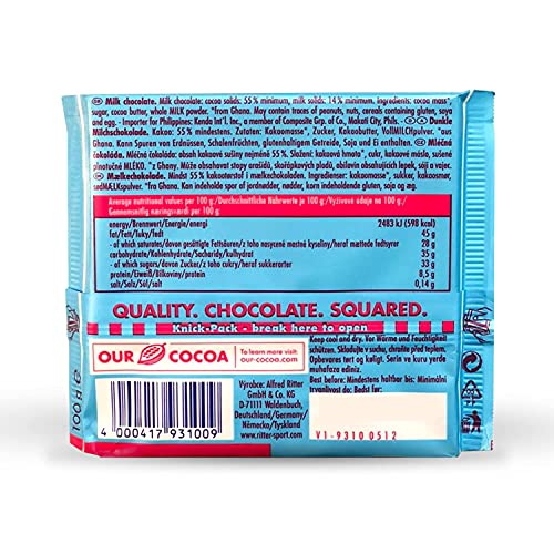 Ritter Sport - شوكولاتة الكاكاو الناعمة من ريتر سبورت، 100 جرام