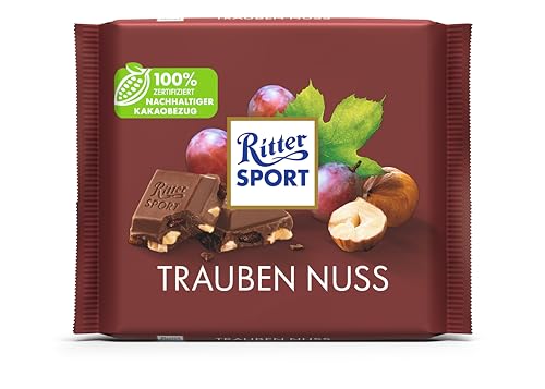 Ritter Sport - لوح شوكولاتة بنكهة الروم مع الزبيب والبندق وزن 100 جرام عبوة تحتوي على 12 قطعة من ريتر سبورت