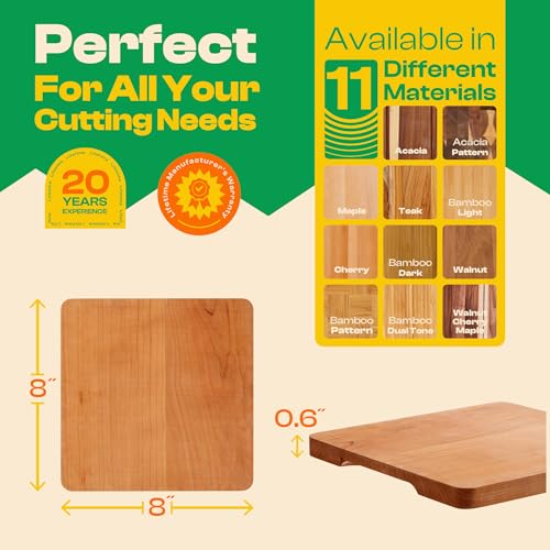 - حجم وسمك مثاليان - انغمس في عالم الطهي العملي مع لوح التقطيع الخشبي مقاس 8 × 8 انش. مصنوعة بسمك مثير للاهتمام، توفر ألواح التقطيع المصنوعة من خشب الكرز القوية والمتينة سطحًا غير تقليدي لجميع مساعي الطهي. يحول لوح التقطيع الأنيق غير السام أعمال التقطيع البسيطة والتقطيع إلى تعثر مبهج. ألواح تقطيع الكرز عالية الجودة هذه تقطع وتفرم في رحلة غير متوقعة في تجربتك الشهية.