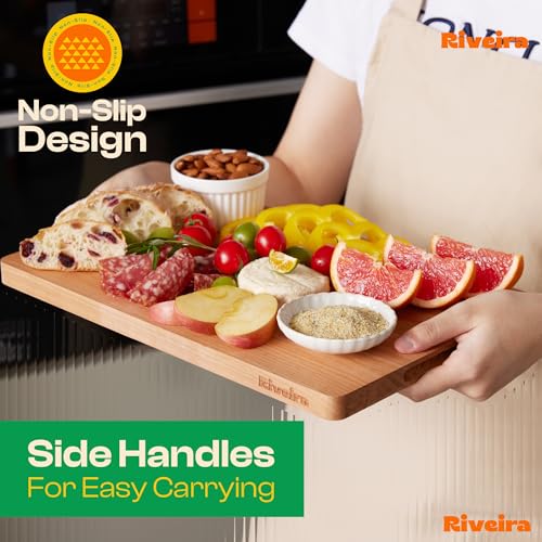 - تعامل مع كل شيء بثقة - تم تصميم مقابض المقبض المدمجة لألواح تقطيع الكرز للتعامل مع كل شيء بثقة وسهولة المناورة. لوح التقطيع الخشبي هذا مزيت مسبقًا وجاهز للحيرة الفورية، ليس مناسبًا لفوضى المطبخ فحسب، بل يتميز بتصميم فريد للحفاظ عليه، مما يضمن أداءً مريحًا ونظيفًا لألواح التقطيع في المطبخ. ألواح التقطيع غير السامة للمطبخ من ريفييرا ستكون مثالية في مطبخك.