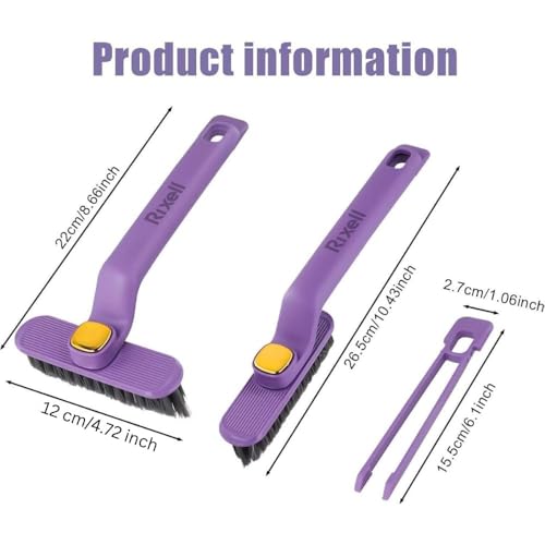 RIXELL - مجموعة فرش تنظيف الحمام من البلاستيك من ريكسيل، مصممة بشعيرات صلبة ورأس دوار 120 درجة، مقاس قياسي، فرش تنظيف الأرضيات والبلاط، لون أرجواني، عبوة من 2 قطعة