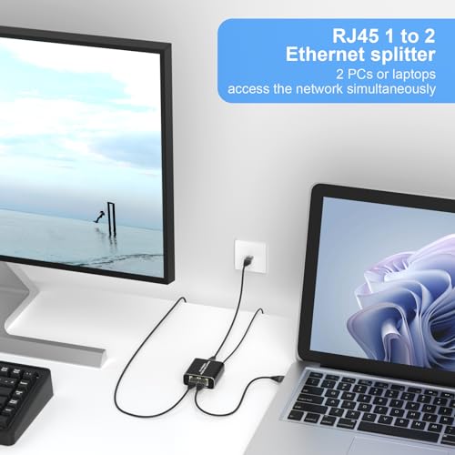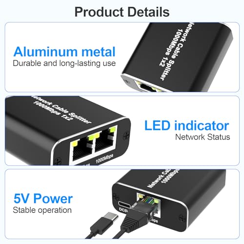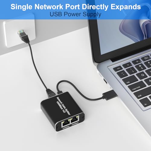 Arkidyn Plus - موزع إيثرنت RJ45 من 1 إلى 2، موزع شبكة جيجابت مع كابل طاقة USB، موزع انترنت RJ45 بسرعة عالية 1000ميجابايت في الثانية لكابل كات 5/5e/6/7/8 [جهازين في نفس الوقت]