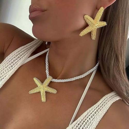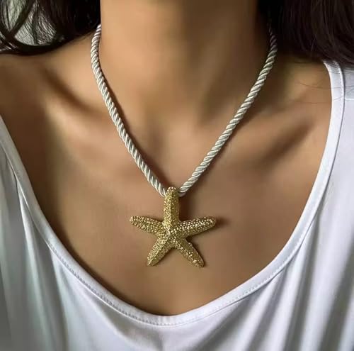 RK ACCESSORIES - سلسلة بدلاية على شكل نجم البحر الذهبي من ار كيه اكسيسوري، سلسلة حبل ملتوية، قطعة مميزة مستوحاة من الشاطئ، لمسة نهائية ذهبية