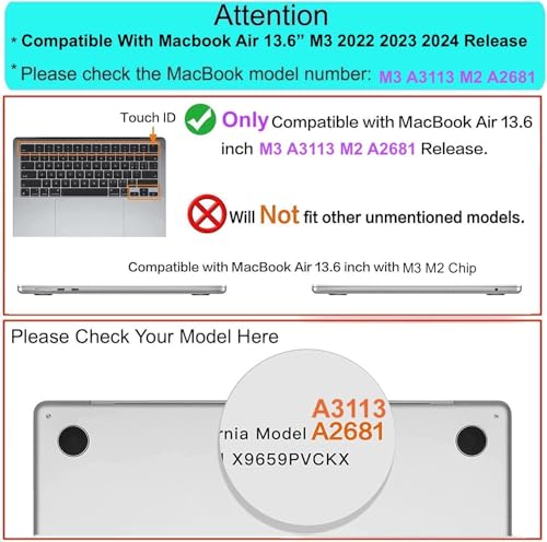 - يرجى التحقق من رقم الموديل "Axxxx" على ظهر جهاز ماك بوك قبل الشراء، وتأكد من اختيار نفس رقم الطراز بالضبط كما هو موضح في عنوان القائمة "A2681". تصميم بدون فتحات، تختلف الشفافية من لون إلى آخر.