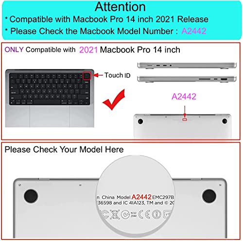 - يرجى التحقق من رقم الموديل "A1xxx" على ظهر جهاز ماك بوك الخاص بك قبل الشراء. تأكد من تحديد نفس رقم الطراز تمامًا مثل العنوان "A2442".