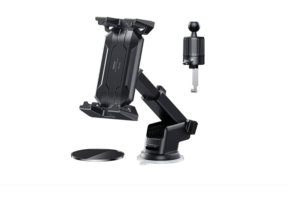 Generic - حامل سيارة 4 في 1 للهاتف والتابلت، موديل RM-C46، أسود، مع قاعدة شفط وذراع قابل للتعديل