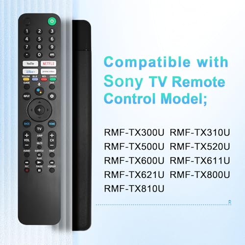 - متوافق مع موديلات أجهزة التحكم عن بعد لتلفزيون سوني: RMF-TX300U، RMF-TX310U، RMF-TX500U، RMF-TX520U، RMF-TX600U، RMF-TX611U، RMF-TX621U، RMF-TX800U، RMF-TX810U.