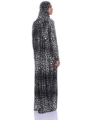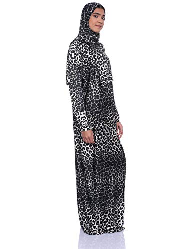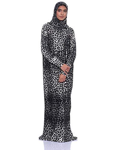 RMfashion - اسدال صلاة منقوش مع طرحة للنساء من ار ام فاشون - رمادي وابيض