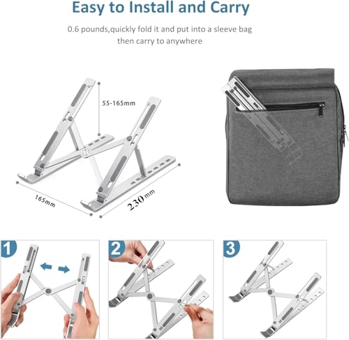 Generic - حامل لاب توب محمول قابل للتعديل من الألومنيوم لدعم الكمبيوتر المكتبي قابل للطي وجيد التهوية متوافق مع معظم الأجهزة من رنا ستور
