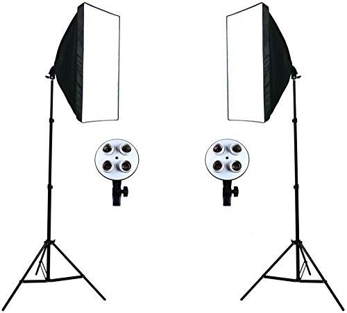 Rness - مجموعة اضاءة سوفت بوكس للتصوير مستطيلة الشكل تضم قطعتين سوفت بوكس قياس 50×70 سم بكل منهما 4 مقابس، وقطعتين حوامل اضاءة تصوير لمستلزمات الاستوديو