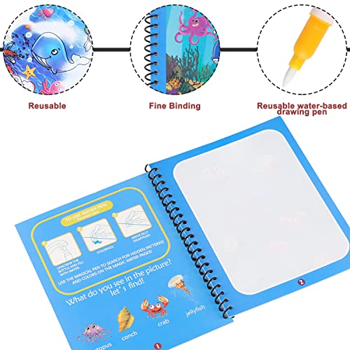 - 【مجموعة كتب الرسم المائي للأطفال】ستحصل على 2 قطعة من كتاب التلوين المائي السحري مع موضوعين من تصميمات الرسوم المتحركة بما في ذلك عالم الحيوانات وعالم تحت الماء و2 × قلم تلوين مائي. كمية كافية وموضوعات كرتونية مختلفة يمكن أن تمنح أطفالك عالم مثير للاهتمام.