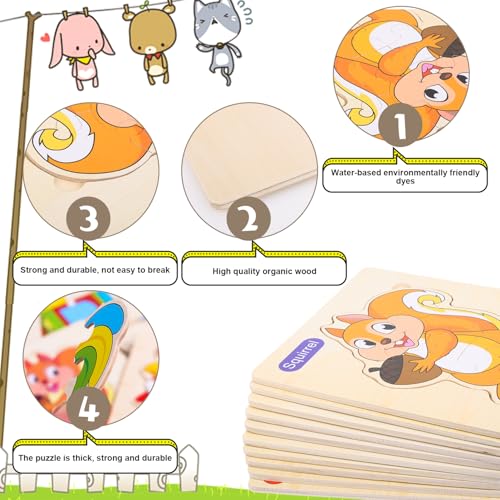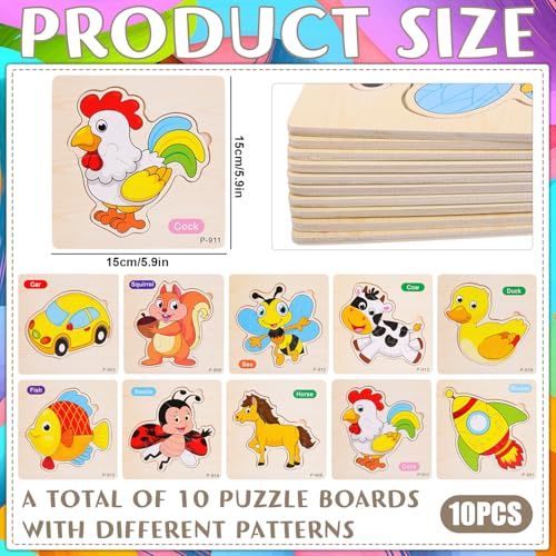 - أحجية خشبية للأطفال الصغار: كل أحجية خشبية لها أبعاد 15 × 15 × 0.4 سم، في المجموع هناك 10 أنماط، مثل: العجل والنحلة والخنفساء والأسماك والبط والديك والسيارة والصواريخ والمهر والسنجاب. تتميز الأحجيات الخشبية للأطفال بألوان زاهية وأنماط متنوعة وستسعد الأطفال كثيرًا بالتأكيد.