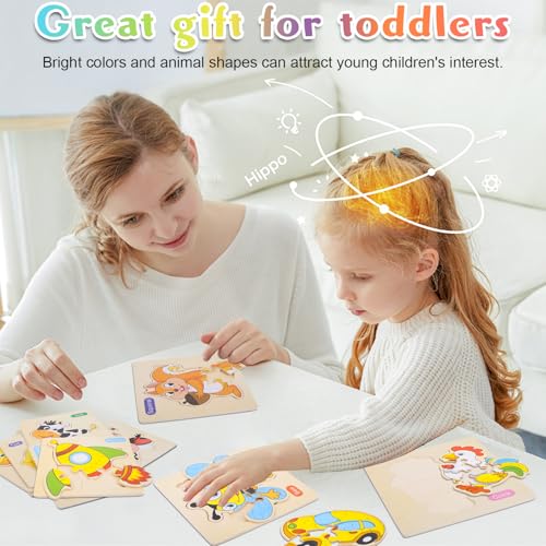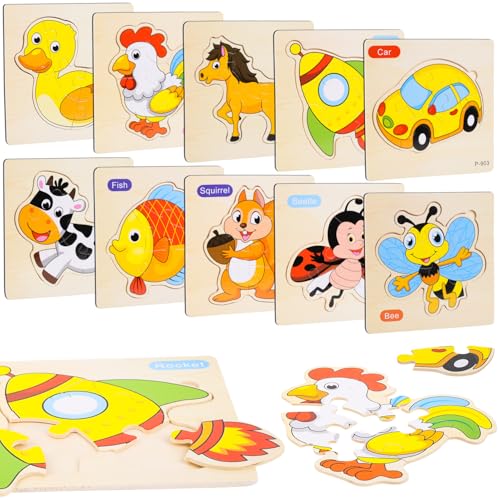 RNHDLY - بازل خشبي للاطفال من ار ان اتش دي ال واي، عبوة من 10 احجية خشبية من 1 2 3 سنوات، لعبة مونتيسوري الخشبية، لعبة تعليمية، احجية خشبية، هدية للاولاد والبنات من سن 1 و2 و3 سنوات