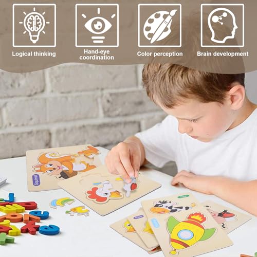 - لعبة تعليمية: تساعد أحجية الألعاب الخشبية الخاصة بنا أطفالك الصغار على تعلم الحيوانات والحشرات وحيوانات المزرعة والمركبات والأسماك بطريقة مرحة. يمكن للأشكال والألوان المختلفة تحسين المهارات الإدراكية لطفلك وتعزيز نمو الدماغ وتحفيز الحواس والتنسيق بين اليد والعين.