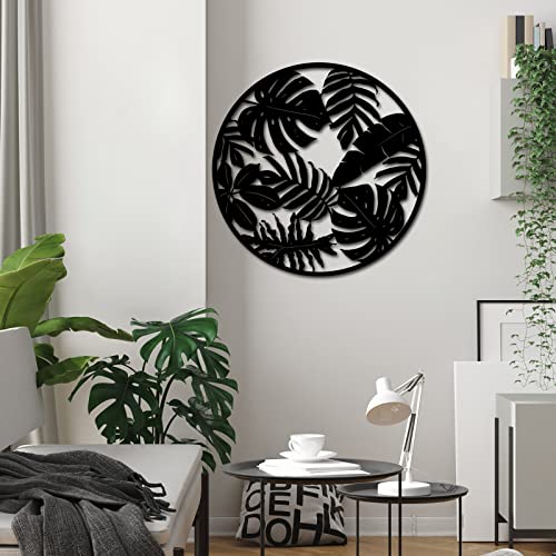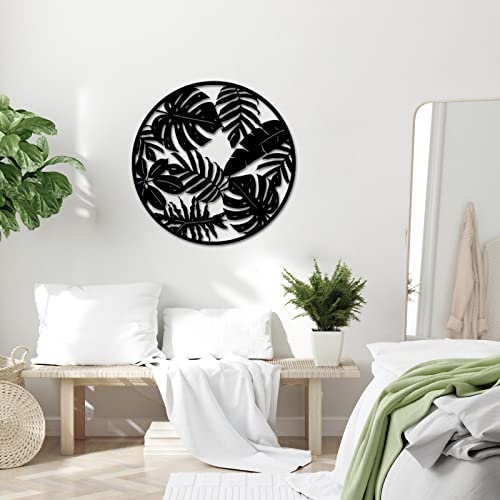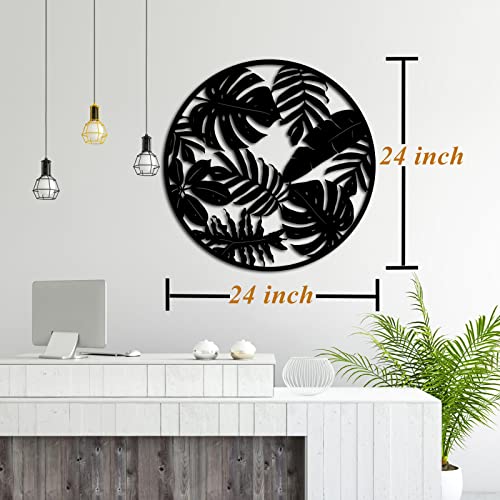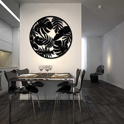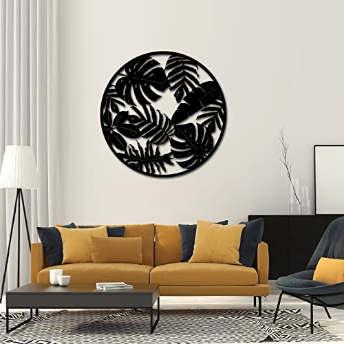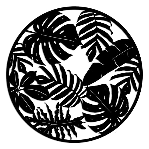 RnnJoile - رين جويل منحوتات فنية جدارية بتصميم اوراق نخيل استوائية ريفية لديكور المنزل وغرفة المعيشة والاماكن الداخلية والخارجية، أسود