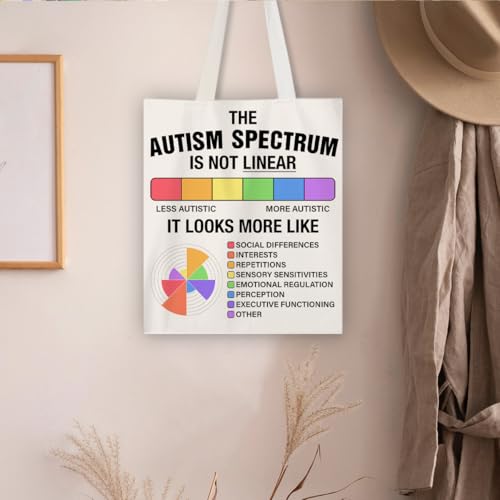 RNYJJ - شنطة يد كبيرة توت من ار ان واي جيه جيه مصنوعة من القماش مناسبة كهدية للنساء في التعليم الخاص والتنوع العصبي للتوعية بالتوحد، شنطة تسوق للبقالة، ملونة، مقاس M