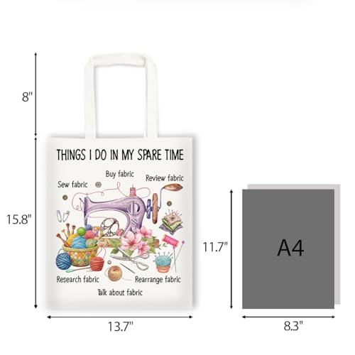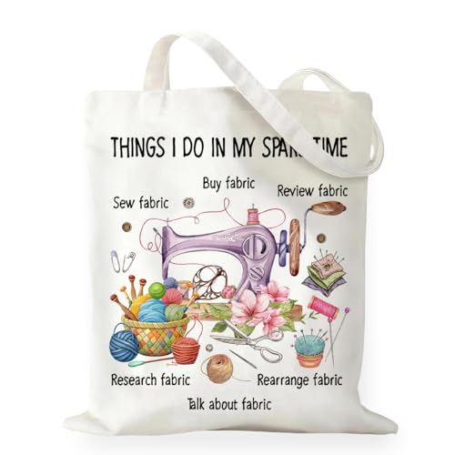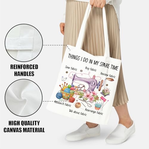 RNYJJ - شنطة يد كبيرة توت قماشية مضحكة للنساء من ار ان واي جيه جيه للخياطة والخياطة والام والجدة والخياطة، هدية بطابع الة الخياطة بعبارة Things I Do in My Spare Time Sewing