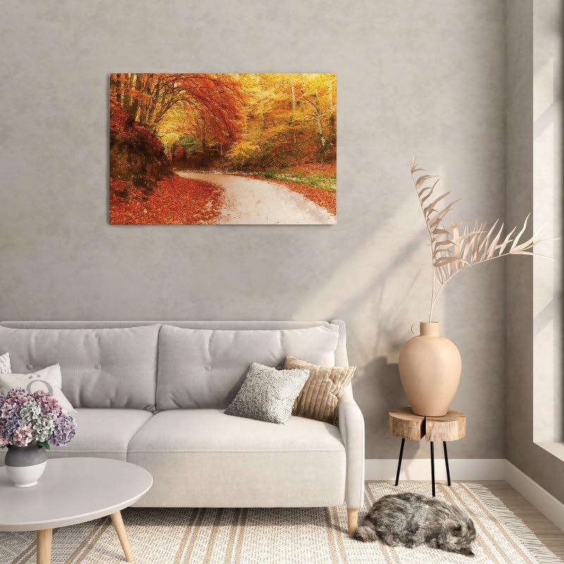 Home Gallery - لوحة فنية جدارية قماشية بنمط غابة الخريف، 90×60 سم
