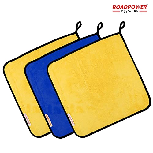 ROADPOWER - منشفة تنظيف السيارة فائقة النعومة وسميكة وسريعة الجفاف مصنوعة من المايكروفايبر من رود باور مقاس 40 × 40 سم (3 قطع) (الوان متنوعة)