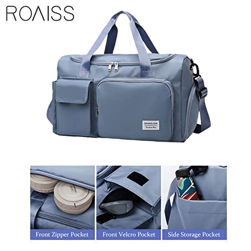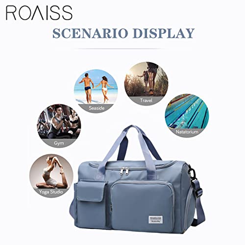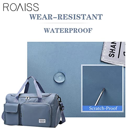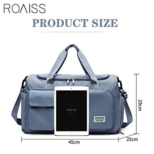 ROAISS - شنطة دفل مقاومة للماء بسعة كبيرة لصالة الالعاب الرياضية للنساء والرجال والسفر والرياضة واليوغا ازرق - 20 انش للسفر من روس قماش