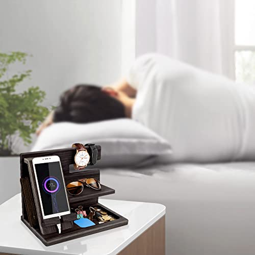 - منظم مكتب خشبي متعدد الوظائف بجانب السرير: سيشحن الحامل الخشبي هاتفك المحمول، وسيحتوي على المزيد من العناصر على الخزانة أو الطاولة أو المكتب أو طاولة القهوة. كل ما تحتاجه في متناول يدك.