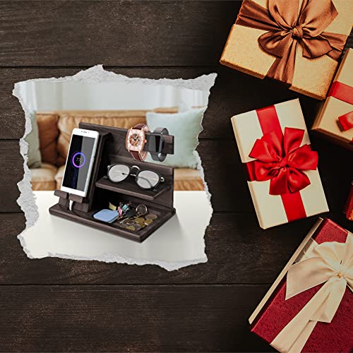 Robomanor - هدية كريسماس للرجال من روبومانور - منظم مكتب خشبي عملي، ومحطة شحن، وحامل ساعة، وحامل هاتف - فكرة هدية مدروسة للأب، لأعياد الميلاد وموسم الأعياد.