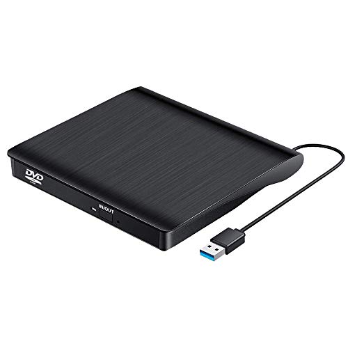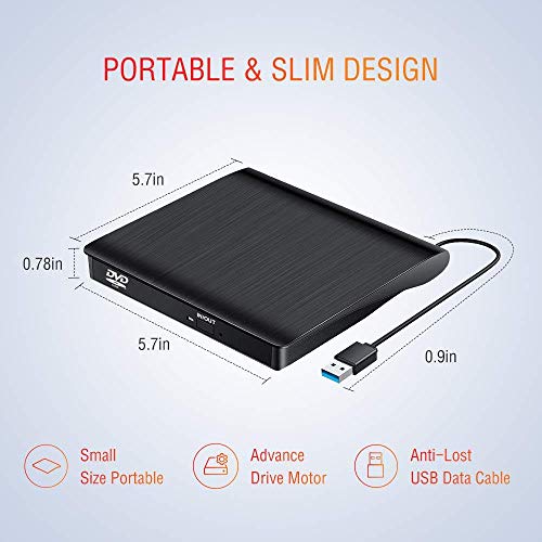Roboraty - محرك اقراص CD خارجي، USB 3.0 محمول CD/DVD +/-RW محرك نحيف للغاية DVD/CD روم، اعادة كتابة اقراص DVD البصرية للكمبيوتر المكتبي واللاب توب والماك بوك برو، لويندوز 10/8/XP، لينكس او اس (اسود)