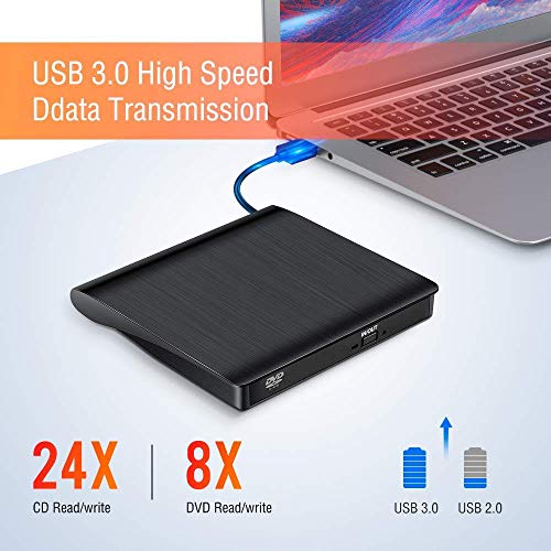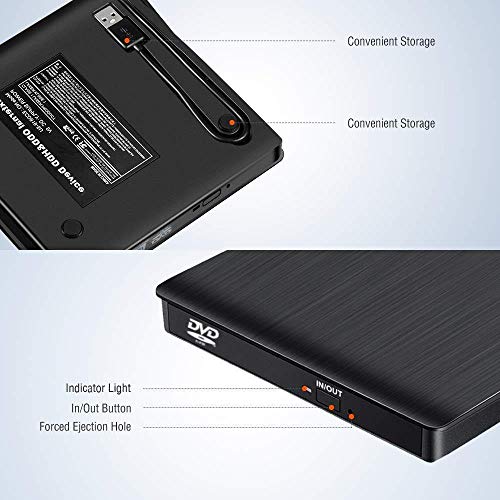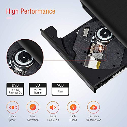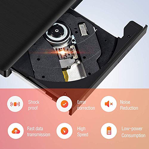 - 【 سرعة عالية】 يعتمد محرك الأقراص المضغوطة على تقنية حرق متقدمة، يدعم DVD-ROM، DVD-R، DVD+R، DVD-RW، DVD-R، DLCDA، CD-ROM، CD-R، VCD، CD-RW. أقصى سرعة قراءة دي في دي روم 8X؛ أقصى سرعة قراءة للقرص المضغوط 24 مرة وأقصى سرعة نسخ دي في دي 8X. محرك أقراص دي في دي الخارجي متوافق مع USB 3.0 ومتوافق مع الإصدارات السابقة مع USB2.0 USB1.0، مما يمنحك سرعة نقل بيانات أسرع (بحد أقصى 5 جيجابايت في الثانية)، وتشغيل الموسيقى والأفلام بدون تأخير أو تشويش.