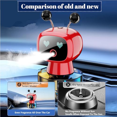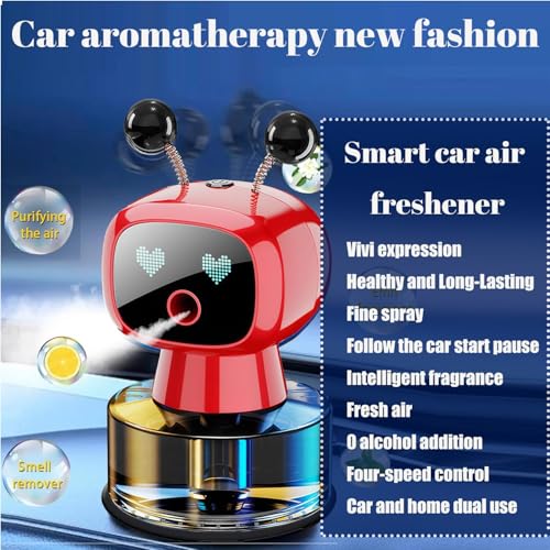 Milymax - جهاز روبوت ذكي بخاصية إطلاق الروائح العلاجية، معطر هواء ذكي بالذكاء الاصطناعي لطيف للسيارة بخاخ دقيق/قابل للتعبئة/ضبط بأربع سرعات/ مستشعر للاهتزاز/ تشغيل/ إيقاف/ عطر بسعة كبيرة يدوم طويلًا، أحمر