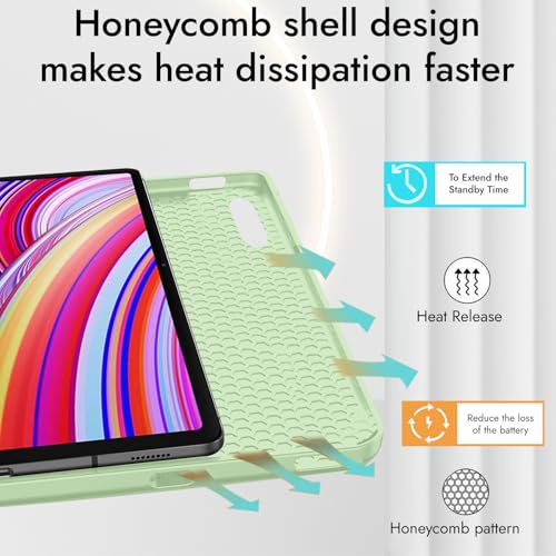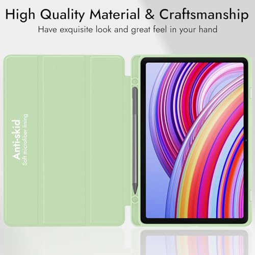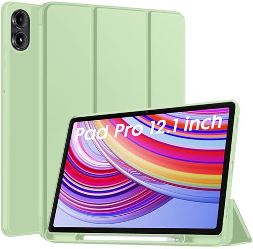 Robustrion - جراب حماية بتصميم قابل للطي مع حامل قلم لتابلت ريدمي باد برو 12.1 بوصة من روبيستريون، يدعم خاصية لسكون/التنشيط التلقائي - أخضر مينت