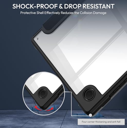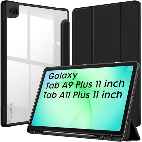 Robustrion - جراب حماية هجيني بظهر شفاف لتابلت سامسونج جالاكسي تاب A9 بلس من روبيستريون- لون أسود، مقاس 11 بوصة، بولي يوريثين