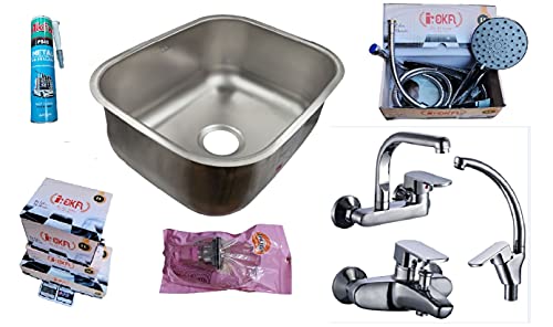 Generic - خلاط روكا 3 قطع مع حوض مطبخ 43*53 سم شامل الصرف والسيليكون و سماعة الدش، متعدد الألوان