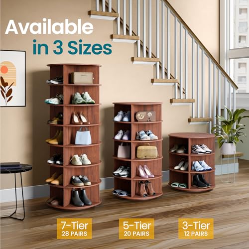 - تصميم موفر للمساحة: بفضل تصميمه على شكل برج، يمكن لرف الأحذية الدوار هذا أن يحمل عددًا كبيرًا من الأحذية في منطقة صغيرة. يمكن للرف المكون من 7 طبقات استيعاب 28 زوجًا من الأحذية، ويمكن للرف المكون من 5 طبقات استيعاب 20 زوجًا، ويمكن للرف المكون من 3 طبقات استيعاب 12 زوجًا من الأحذية.