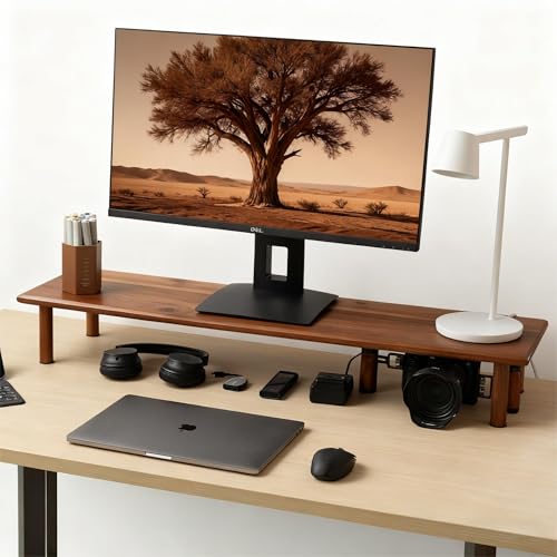 - هيكل من خشب الأكاسيا الفاخر: مصنوع من خشب الأكاسيا عالي الجودة بلمسة نهائية بنية ريفية غنية، يضيف حامل الشاشة هذا لمسة من الأناقة الطبيعية إلى أي سطح مكتب أو مساحة عمل.