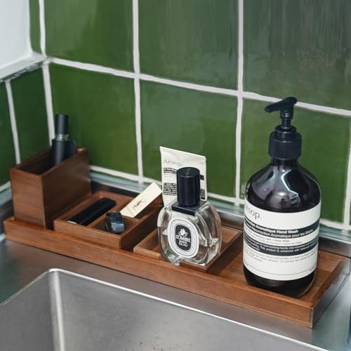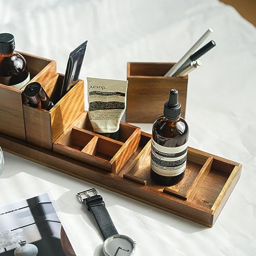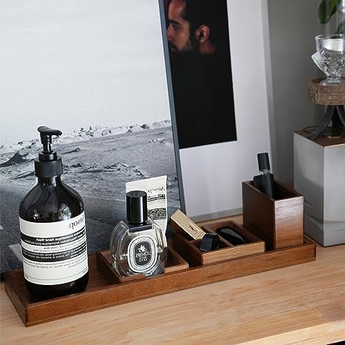 ROCDEER - صينية زينة خشبية صغيرة لتنظيم منضدة الحمام، صواني ديكور خشبية مستطيلة للعطور والمجوهرات والمكياج ومستحضرات التجميل من روكدير، 6 قطع