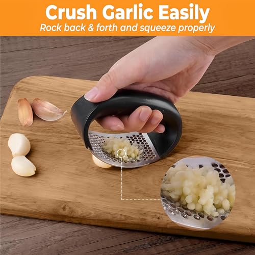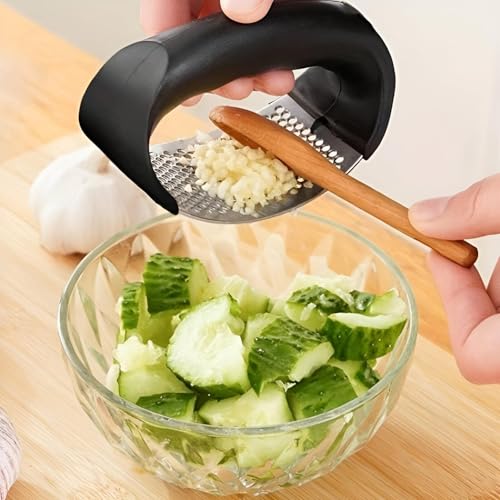 Generic - هراسة ثوم هزاز - مفرمة من الستانلس ستيل عالي الجودة لتحضير الثوم بشكل فعال، اداة مطبخ قابلة للغسل وصغيرة الحجم، مثالية لسهولة الطبخ وتزيين الطعام