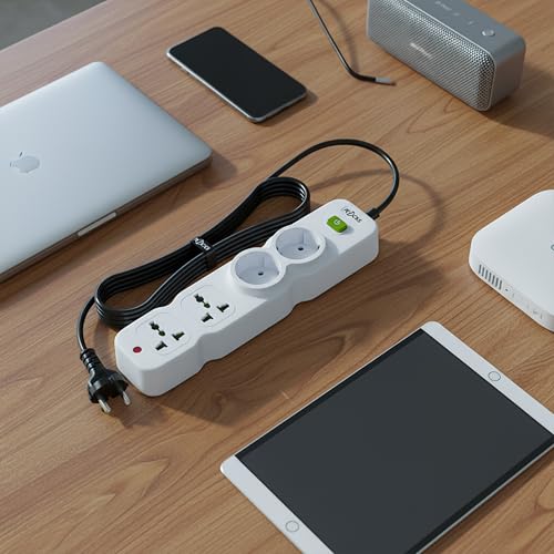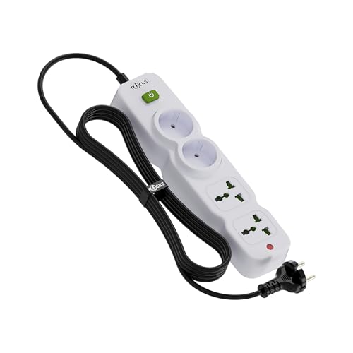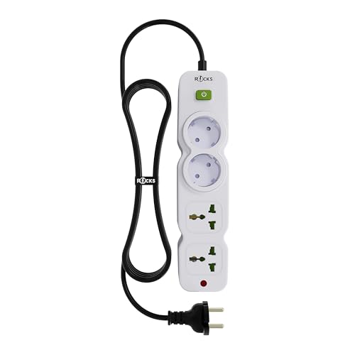 Rocks - مشترك كهربائي بـ 2 مقبس بريطاني و2 مقبس أوروبي وكابل بطول 3 م R-583 من روكس، أبيض