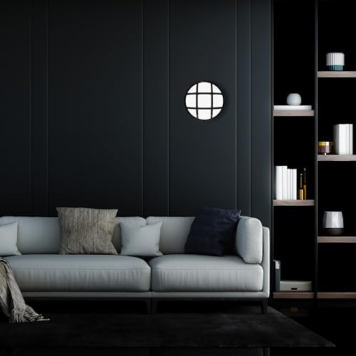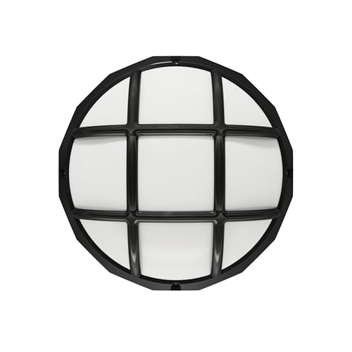Rocks - مصباح شكل كرة أرضية مقاوم للماء R-614 مع شبكة واقية- ضوء خارجي متين للحديقة والفناء والشرفة من روكس، 24 سم، أسود