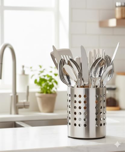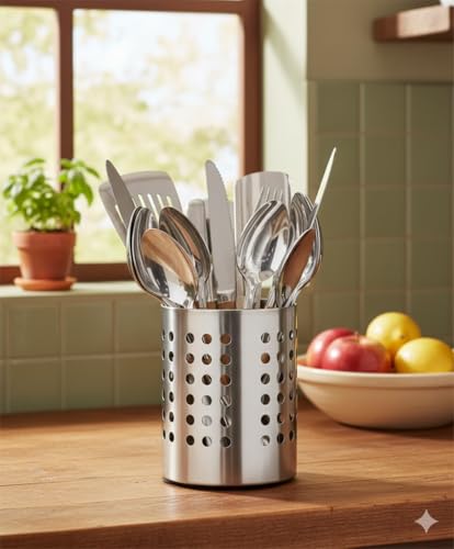 ROCKY, - مصفاة ادوات مائدة فردية من الستانلس ستيل T-817 من روكي، حامل ادوات مائدة فاخر لتنظيم سطح الطاولة وتجفيف الملاعق والشوك والسكاكين