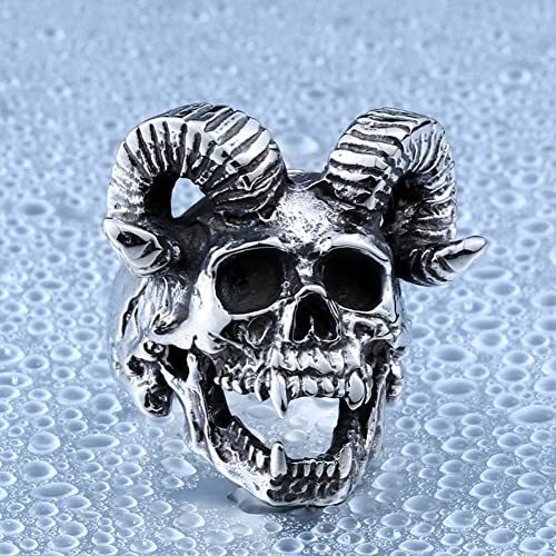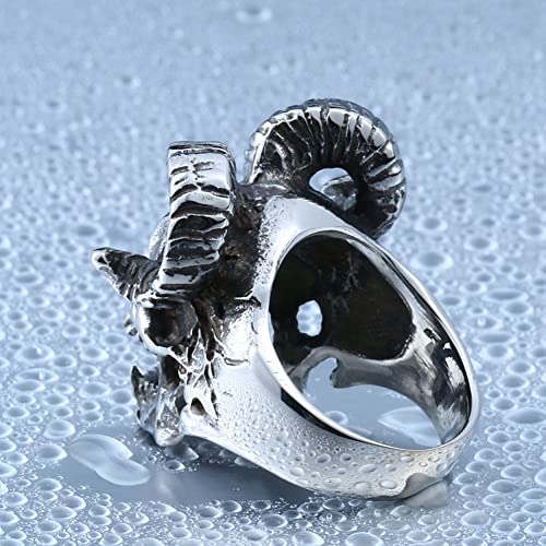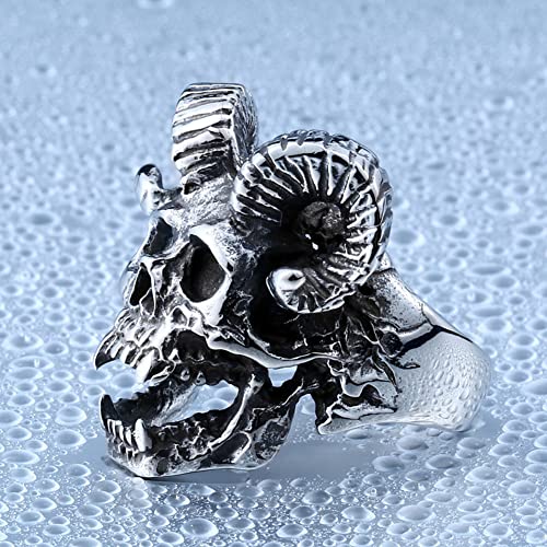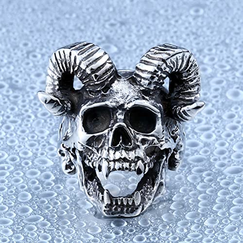 Rockyu - خاتم للرجال من الفولاذ المقاوم للصدأ، خاتم أنيق بتصميم جمجمة بنمط بانك، خاتم رائع للرجال، خاتم حماية بنمط بانك هيب هوب، هدية مثالية للكريسماس أو ذكرى الزواج أو عيد الميلاد من روكيو