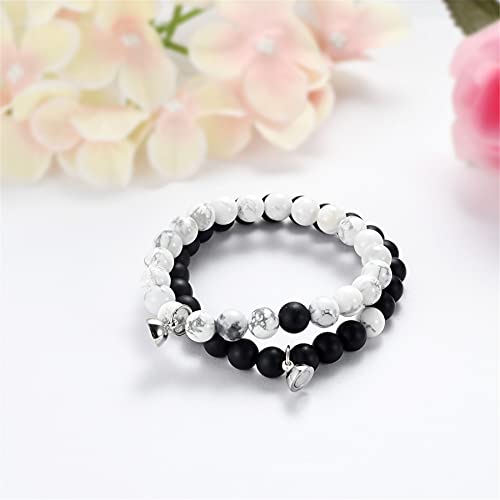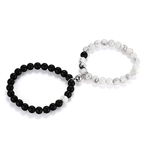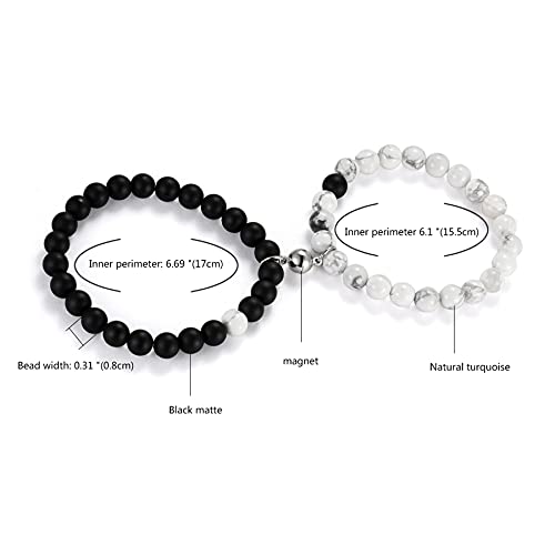 Rofusn - اساور جاذبية متبادلة للازواج مغناطيسية من روفاسن قطعتين بلون اسود مط وعقيق وابيض وخرز التركواز سوارين كتذكار في وقت البعد طقم ومجوهرات الصداقة ستانلس ستيل أخرى للرجال الأولاد للنساء