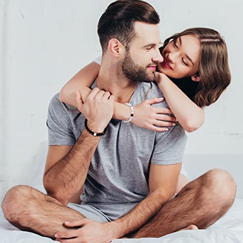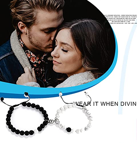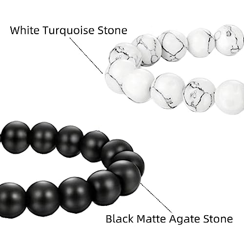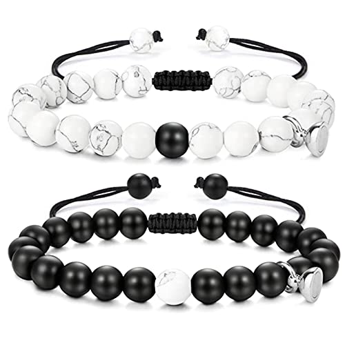 Rofusn - اساور جاذبية متبادلة للازواج مغناطيسية من روفاسن قطعتين بلون اسود مط وعقيق وابيض وخرز التركواز سوارين متماثلين كتذكار في وقت البعد طقم للزوجين ومجوهرات الصداقة 8.6 inches أخرى للرجال