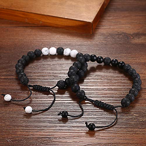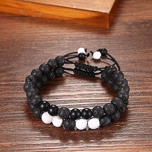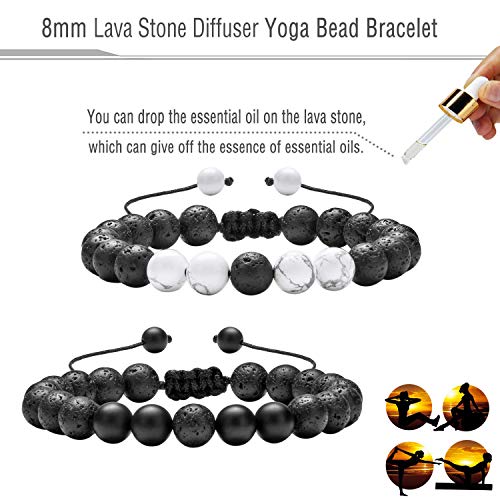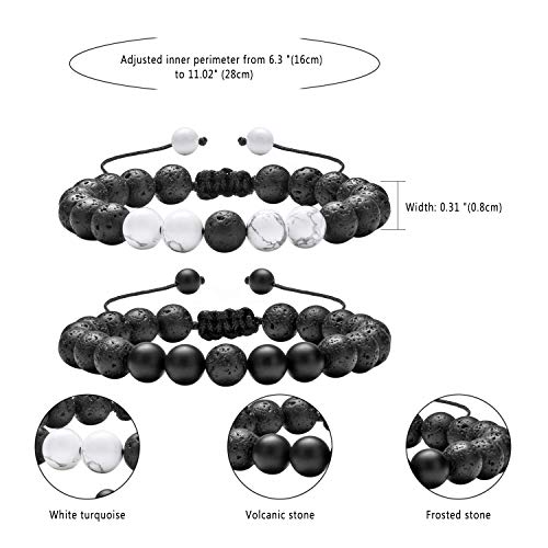 Rofusn - سوار خرز لافا موزع زيوت عطرية لليوجا من روفوسن، سوار معصم مطرز بخرز للازواج والاصدقاء، قطعتين 8 ملم
