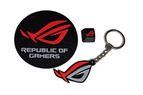Generic - مجموعة العاب تحمل العلامة التجارية روج مع غطاء مفاتيح وسلسلة مفاتيح، مجموعة من 3 قطع، تصميم شعار احمر واسود
