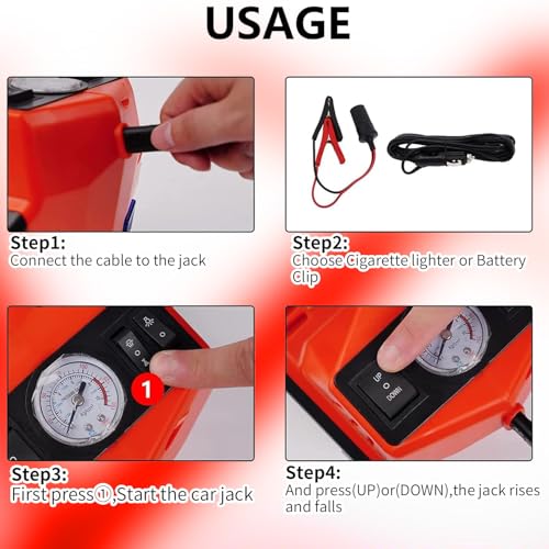 - متعدد الوظائف: يمكنه العمل ككوريك للسيارة ومضخة هواء ومصباح ليد، مما يجعله يلبي احتياجات متعددة. لوحة التحكم سهلة الفهم والاستخدام. بزر بسيط، يمكن للكوريك أن يرتفع وينخفض اوتوماتيك، ومقياس الضغط يسهل رؤية ضغط الهواء.