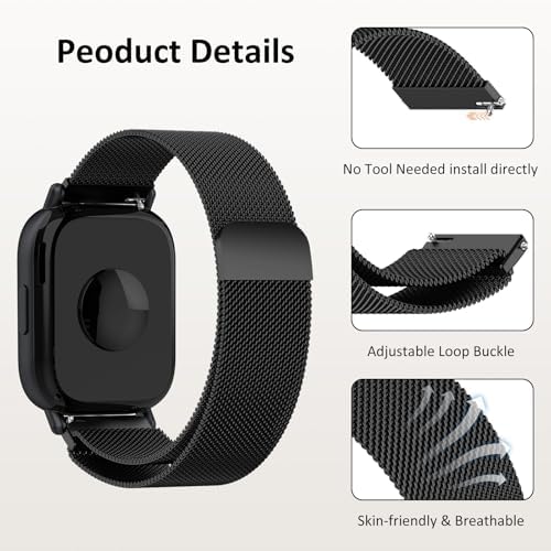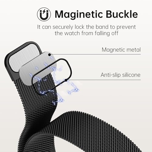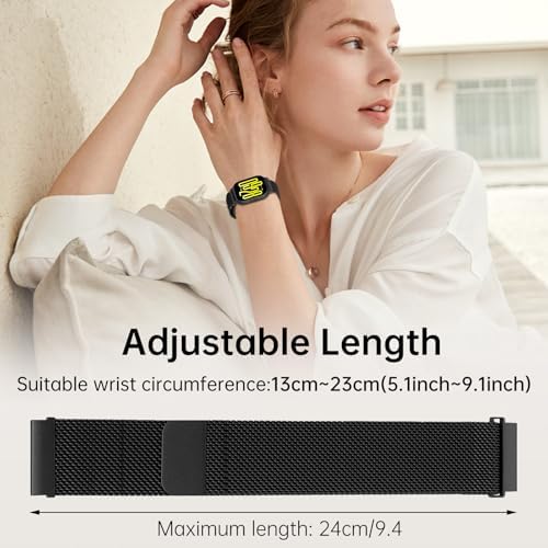 RoiYeel - سوار من روييل متوافق مع ساعة شاومي ريدمي 5 لايت/ شاومي ريدمي ووتش 5 اكتيف، سوار معدني شبكي مغناطيسي من الفولاذ المقاوم للصدأ قابل للتعديل لساعة ريدمي ووتش 5 اكتيف/ ووتش 5 لايت