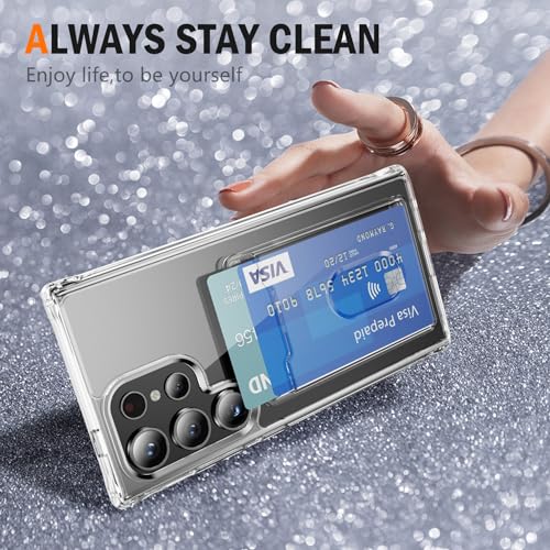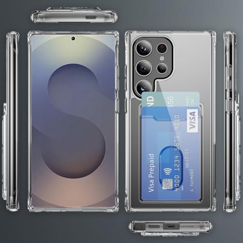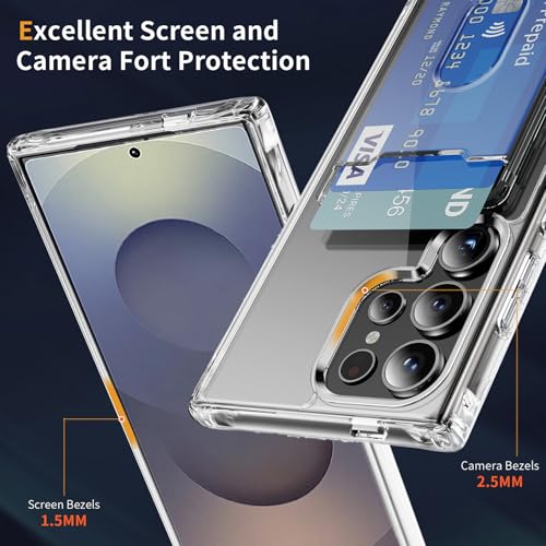 rojarou - جراب لموبايل سامسونج S25 الترا مع حامل كروت من روجارو، حماية من الدرجة العسكرية، شفاف