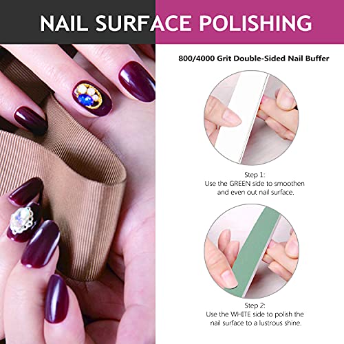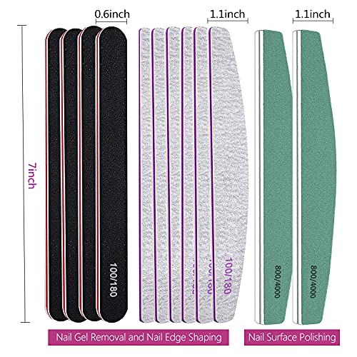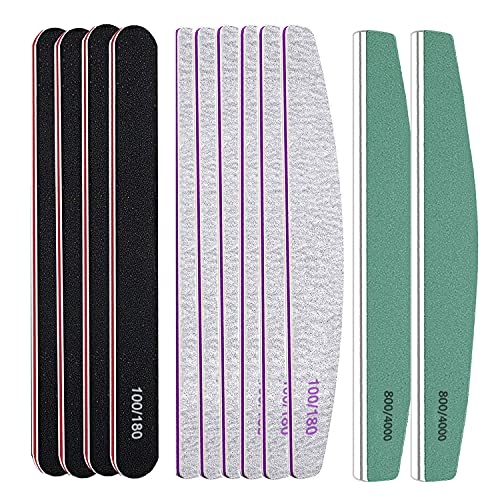 NAILFUN - 12 قطعة من مبرد اظافر احترافي من روليكس، مجموعة مزدوجة الجوانب 100/180 ولوحات صنفرة للاظافر 800/4000، اداة صقل الاظافر ومانيكير الاظافر للمنزل والصالونات