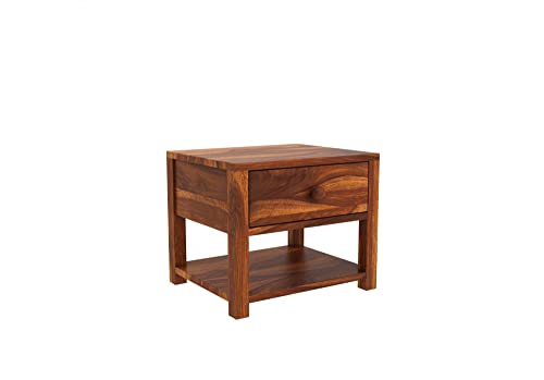 Roliwal Furniture - طاولة جانبية خشبية شيشام من روليوال فيرنتشر مع رف ودرج تخزين لغرفة النوم | طاولة مصباح من الخشب الصلب للمنزل | طاولة جانبية | طاولة جانبية للاريكة من خشب الورد لغرفة المعيشة (لون عسلي ايه)